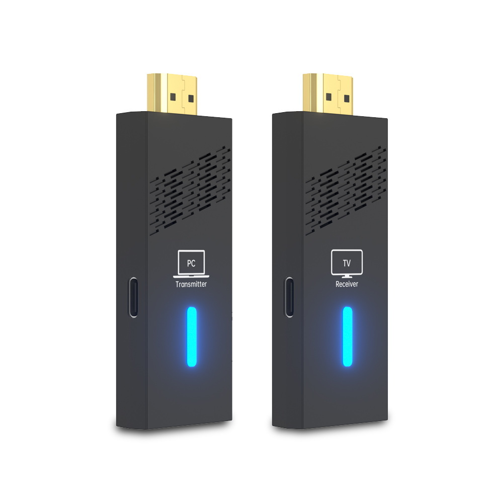 1.將「發射端(PC)」接到訊號來源的 HDMI;再接 USB 供電。